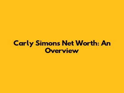 Carly Simon's Net Worth: An Overview